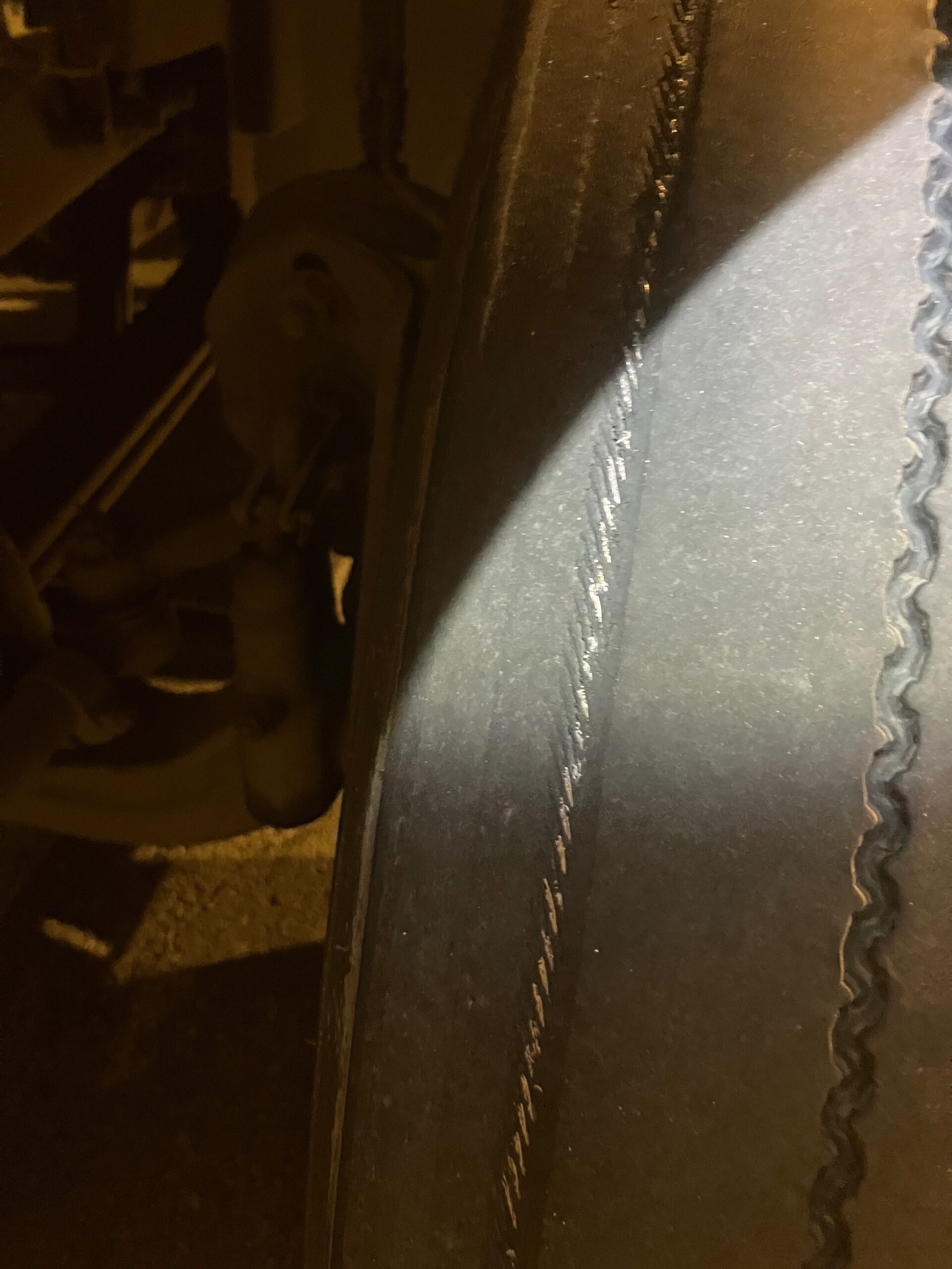 Ils ont émis 7 constats d’infractions dont deux pour véhicule en mauvais état mécanique (un pour chaque véhicule lourd), un pour pneu non conforme (voir la broche sur l’image), un pour avoir circulé avec des défectuosités majeures, un pour avoir circulé avec des défectuosités mineures non conformées dans le délai de 48 heures, un pour absence de preuve d’assurance et un pour ne pas avoir noté les défectuosités dans la ronde de sécurité. Ainsi que 4 avis de non-conformité